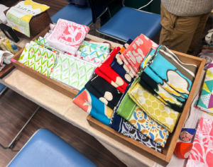 色鮮やかで個性的なデザインの商品ばかりで多くの方が手に取ってました。
