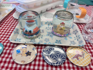 イラストはもちろんのこと、販売と並行してクリスマスらしいスノードームづくりも開催していただきました。