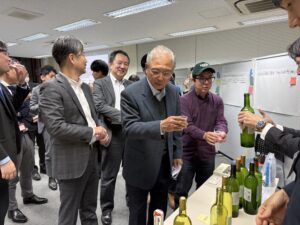 セッション後は中川徳生会が作った浜なしワインを試飲しながら交流!